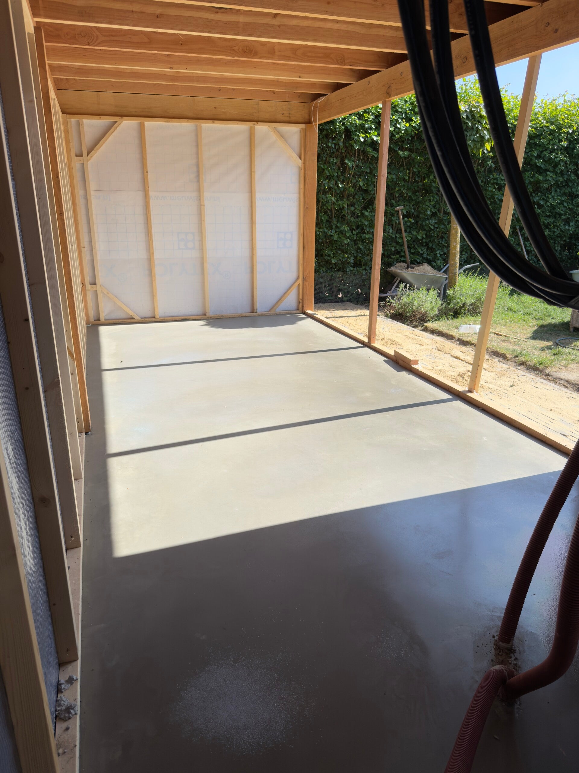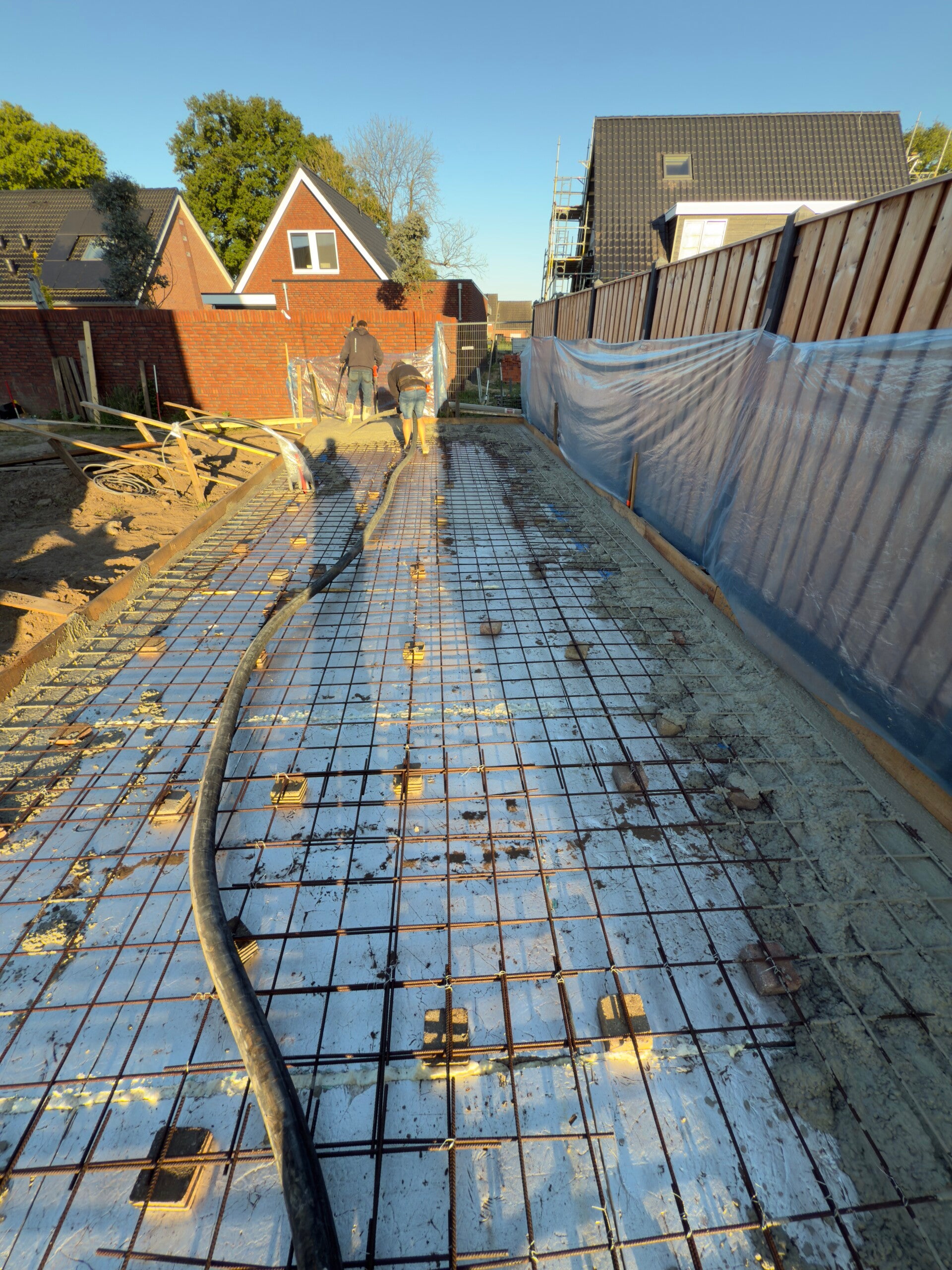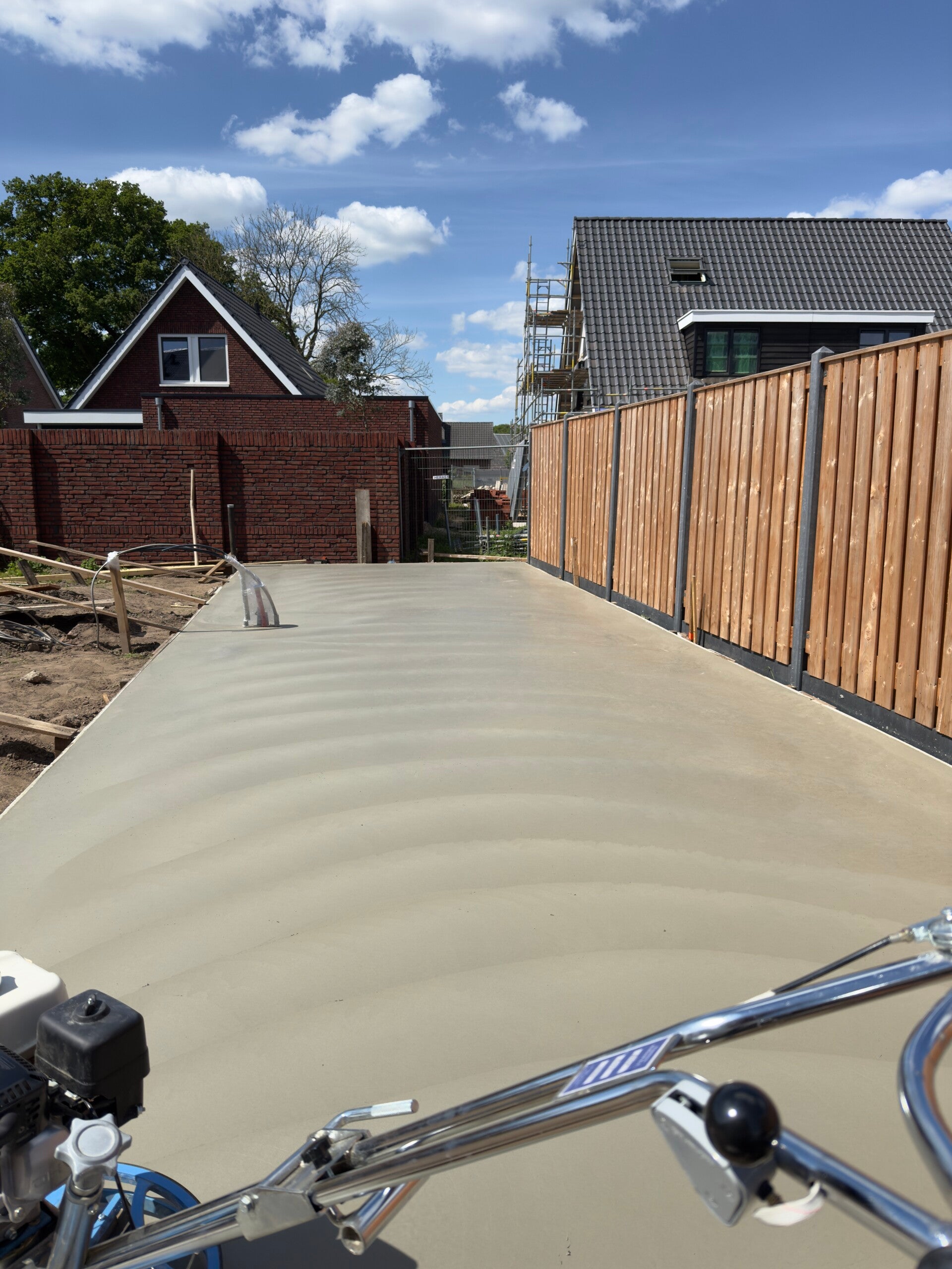 Mooie strakke gevlinderde betonvloer voor een overkapping in Hoogeveen.